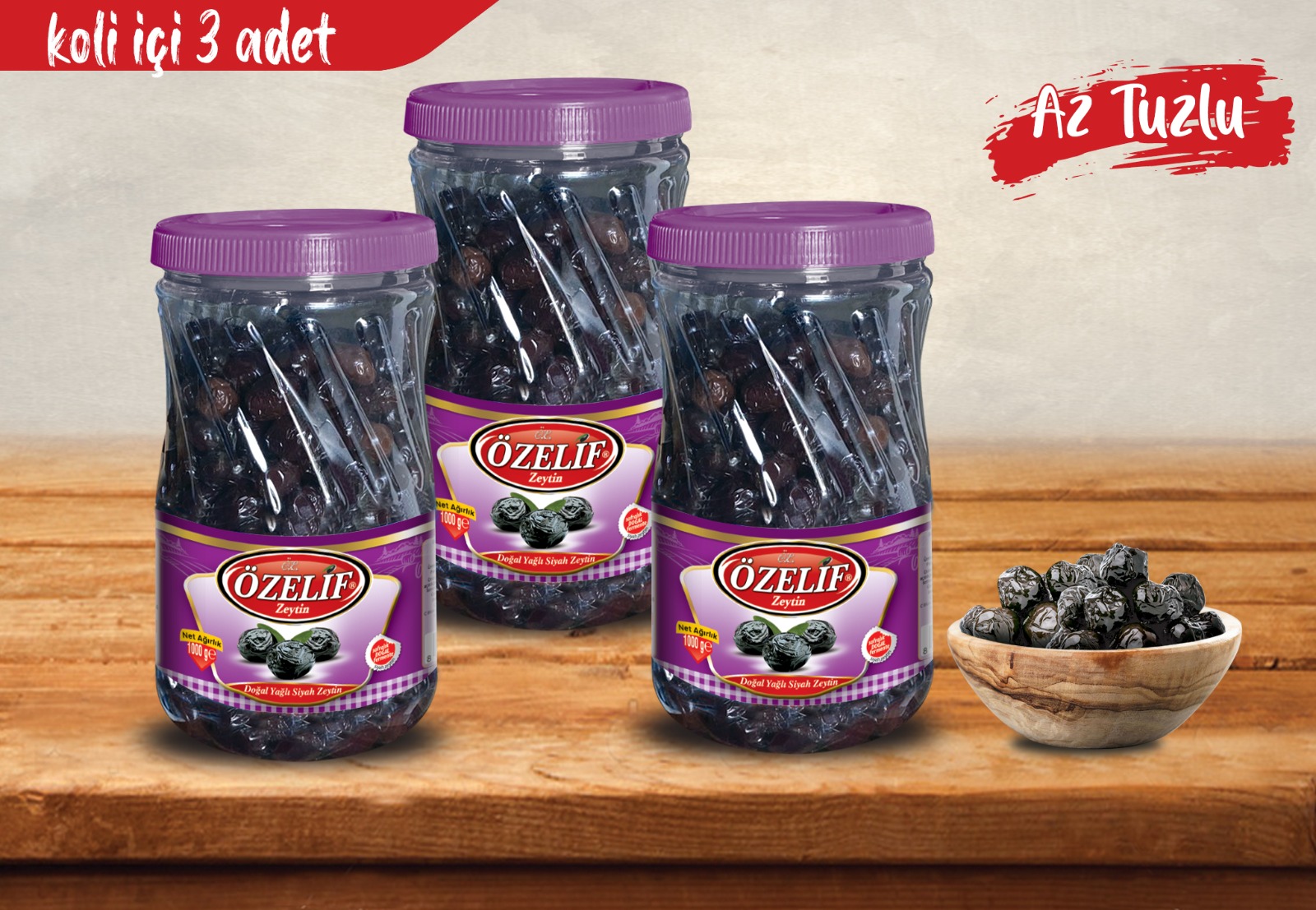 Siyah Yağlı Sele Zeytin 1kg pet ambalaj Mor Kapak (3 Adet Satış Fiyatı)